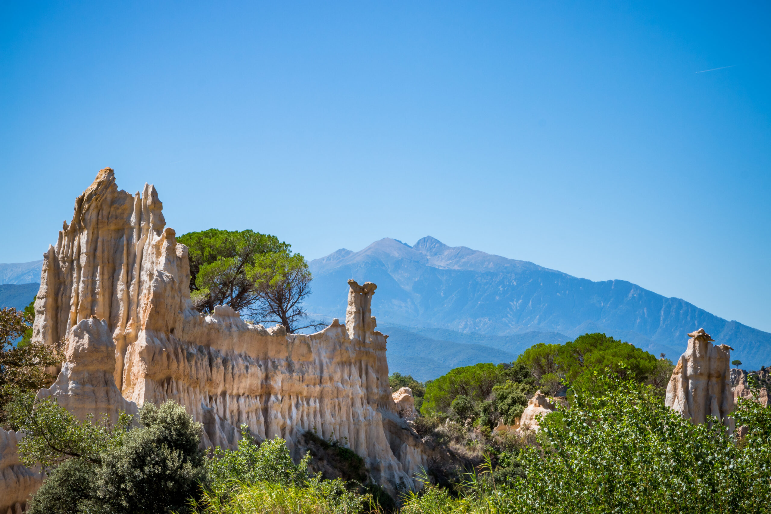 L’après-midi, visite guidée des orgues d’Ille-sur-Têt, spectaculaires curiosités géologiques au coeur d’une nature verdoyante